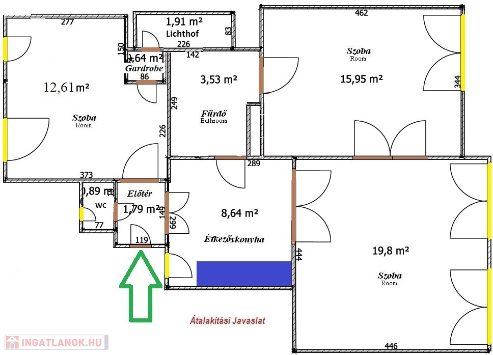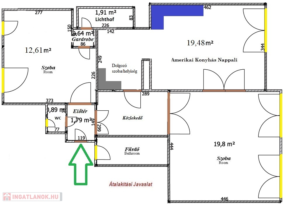 sokféleképpen lehetséges, mivel tartópillérek vannak, főfalak nincsenek.