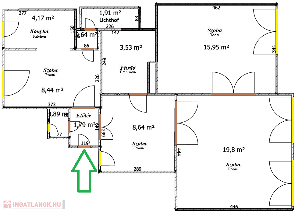 Az ingatlan utcai frontjai DK-i tájolásúak, a kert felé néző részek pedig ÉNy-iak. Ebből adódóan világos lakás még borongós időben is.